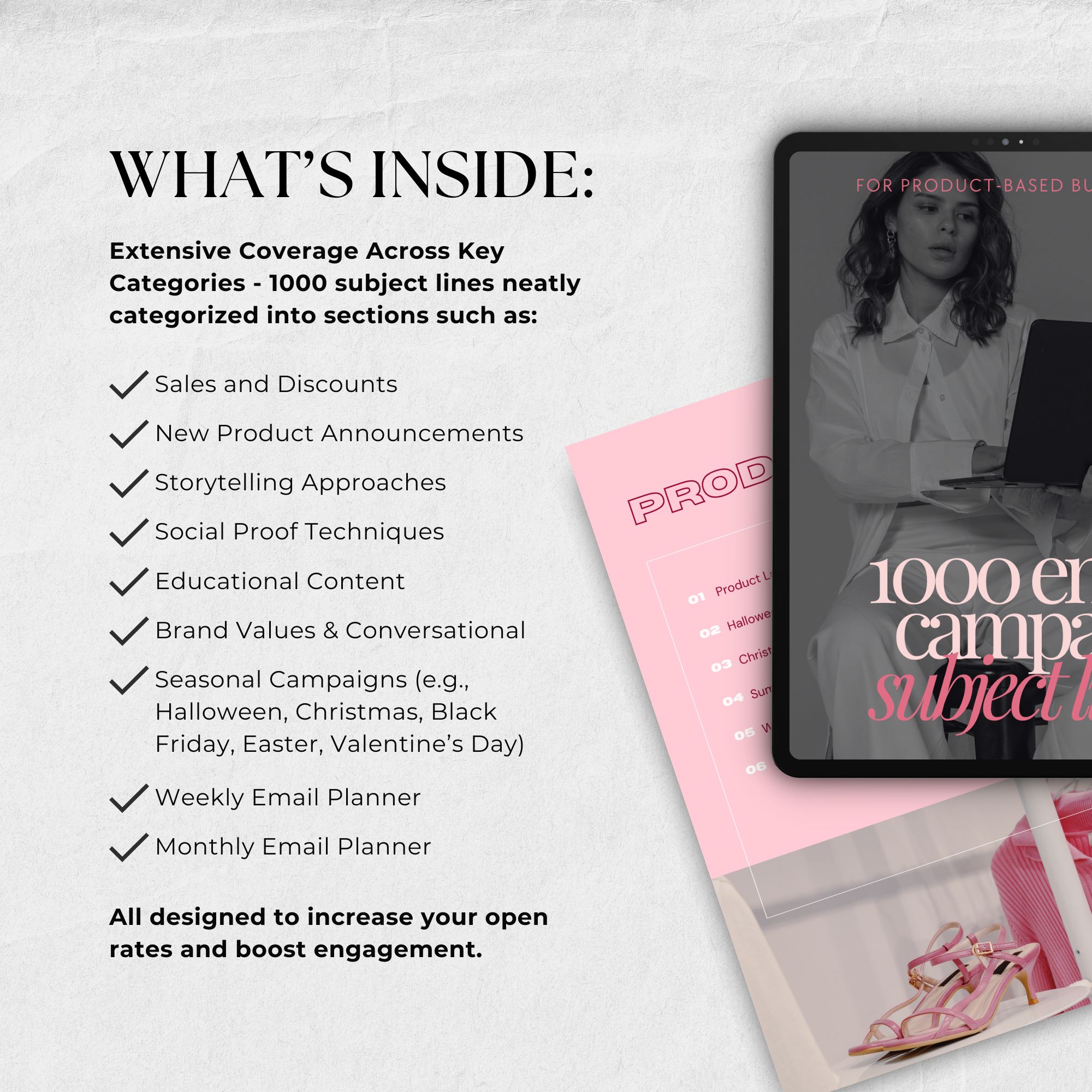 ✔ 1000 Email Subject Lines – Ready-to-use for any campaign.