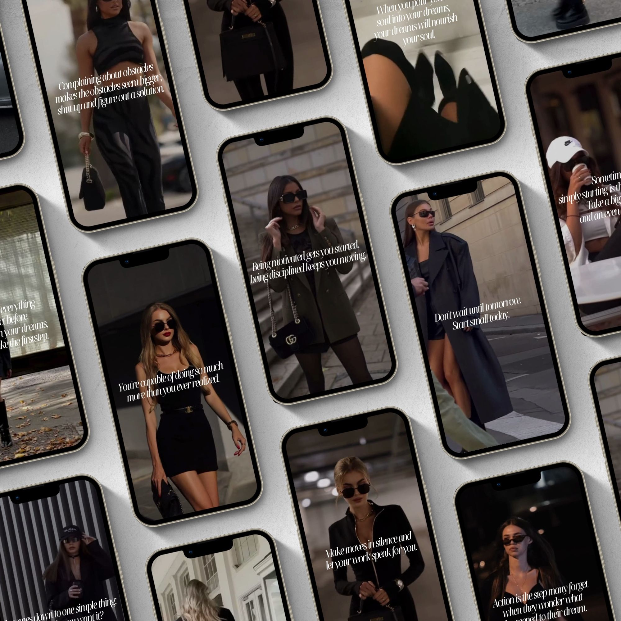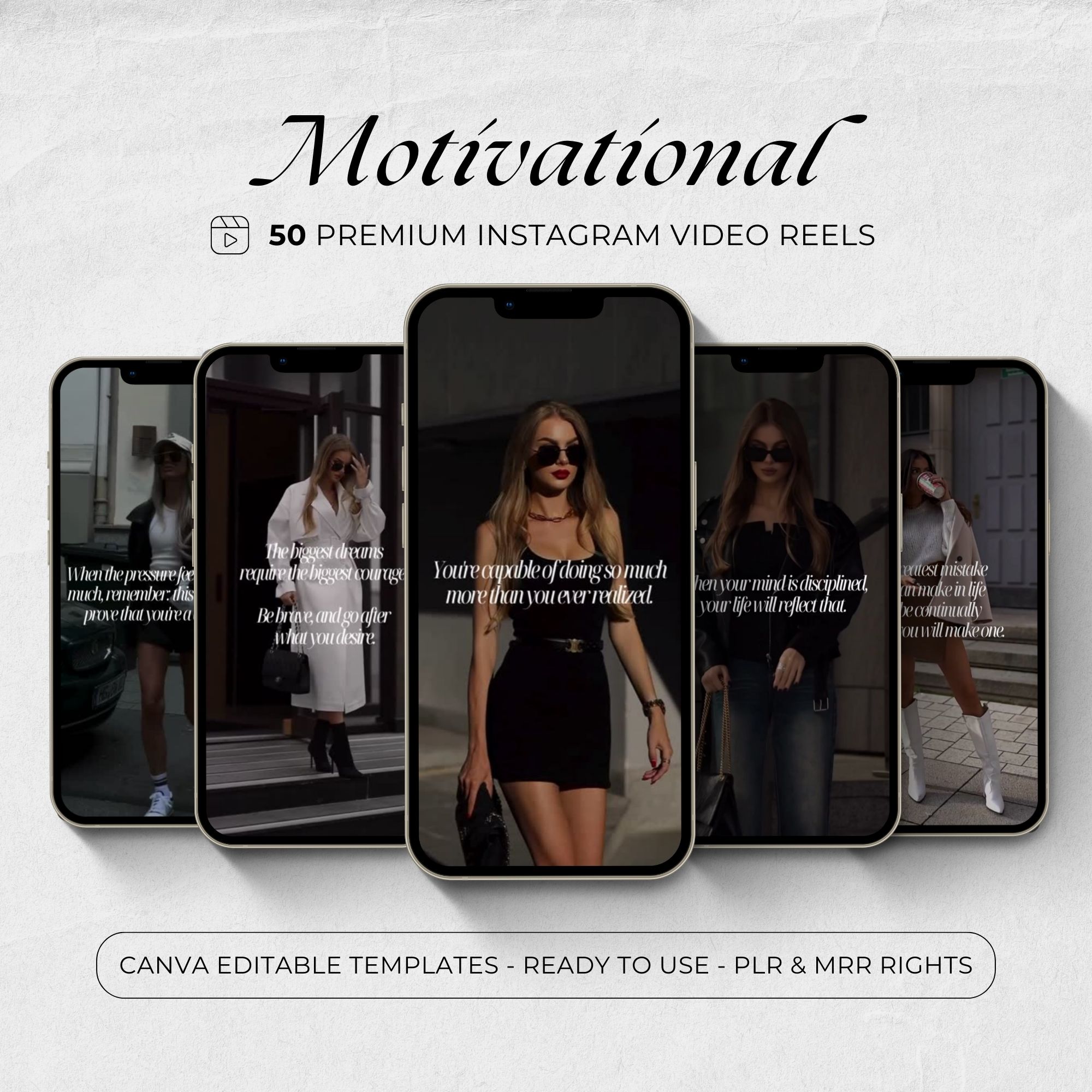 ✔️ 50 Reels for Inspiration & Engagement: Each reel features a motivational quote designed to resonate with go-getters, dreamers, and hustlers. From pushing through hard days to finding discipline, these reels speak to the heart of the journey.