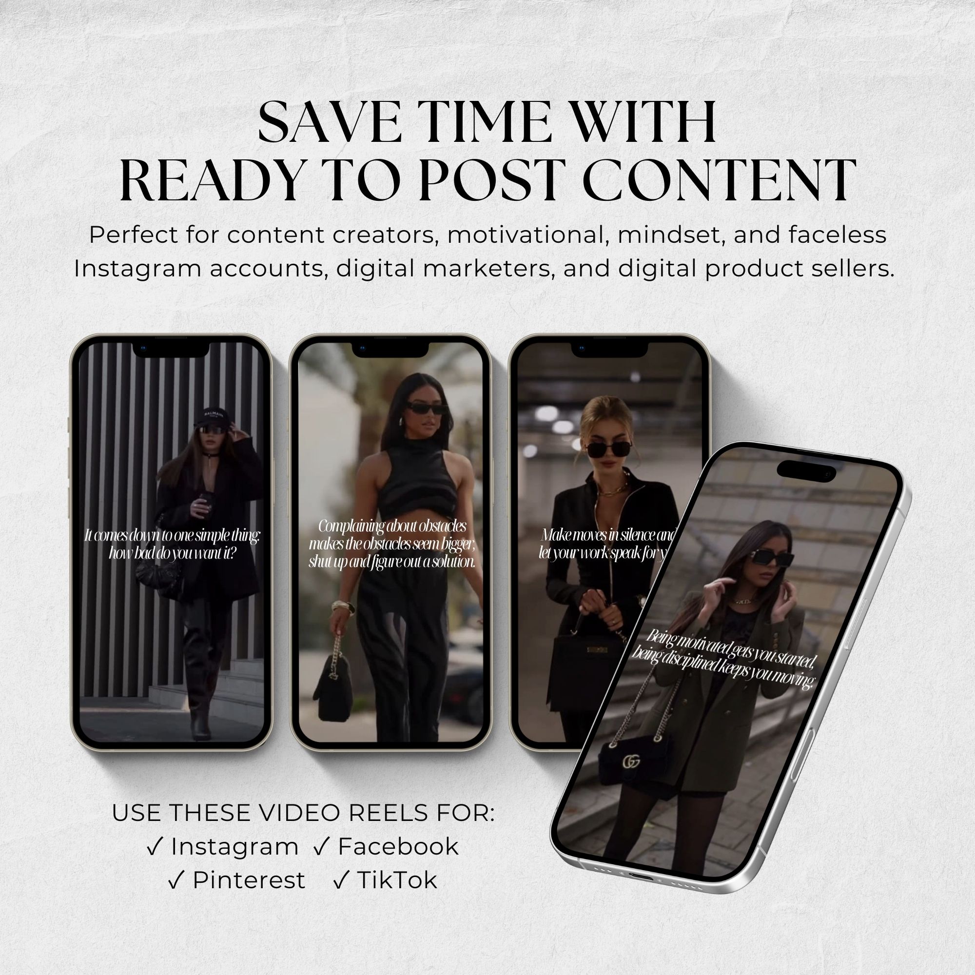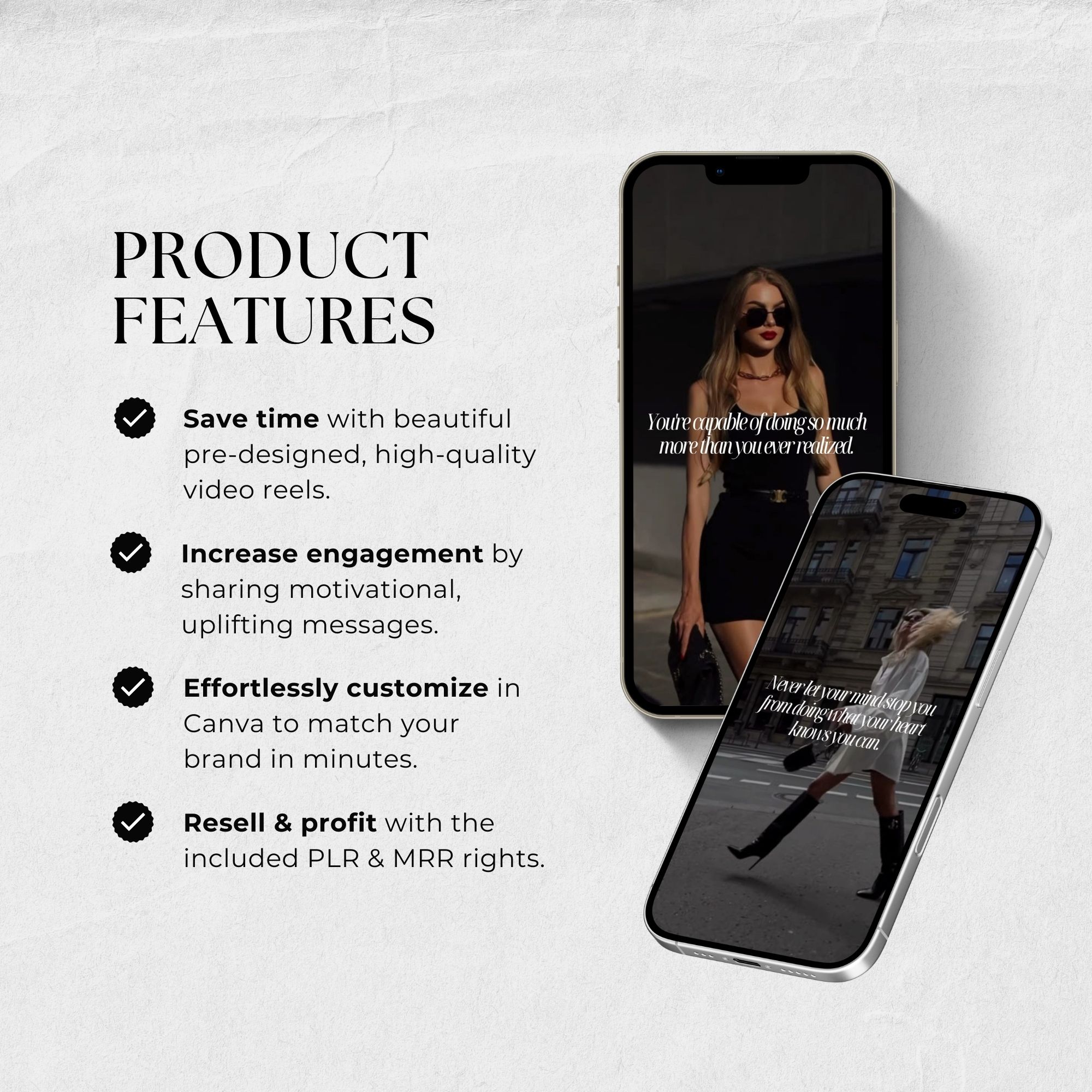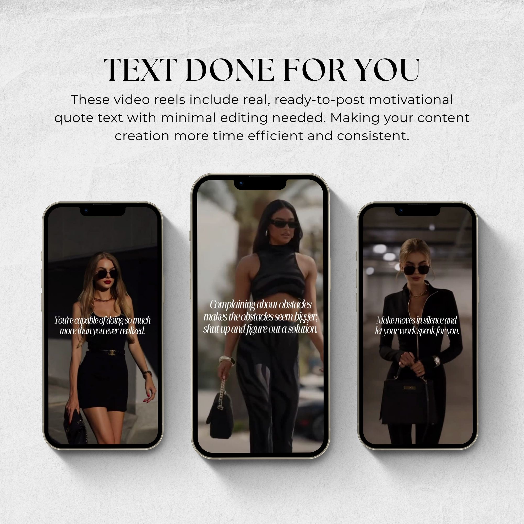 Each reel in this collection is created to inspire, uplift, and motivate your followers. With strong, relatable messages, they’ll add value to your content strategy and keep your audience coming back for more.
