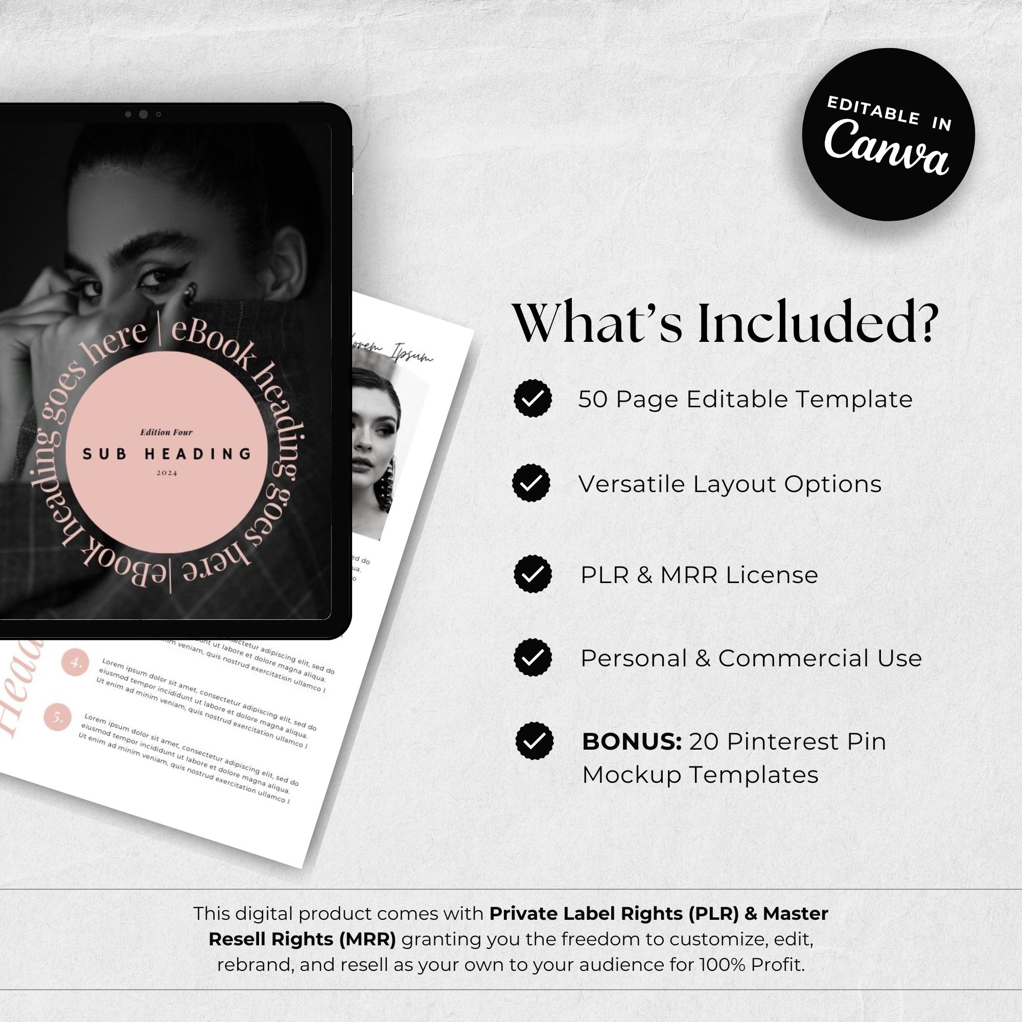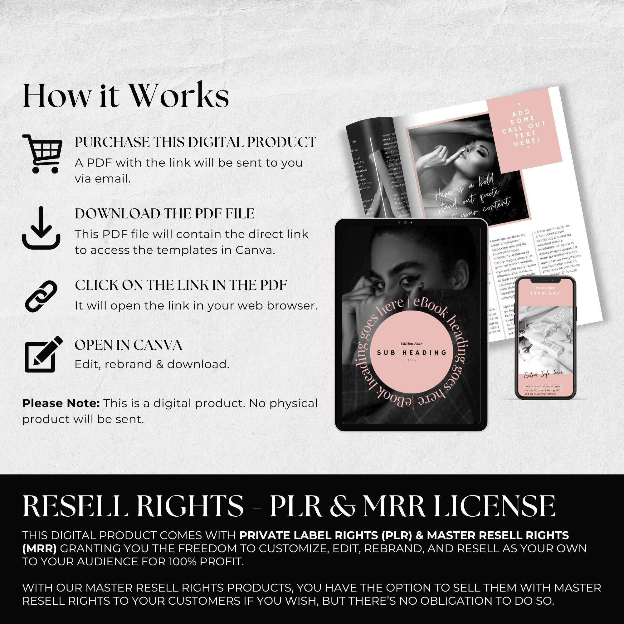 This digital product comes with Private Label Rights (PLR) & Master Resell Rights (MRR) granting you the freedom to customize, edit, rebrand, and resell as your own to your audience for 100% profit.
