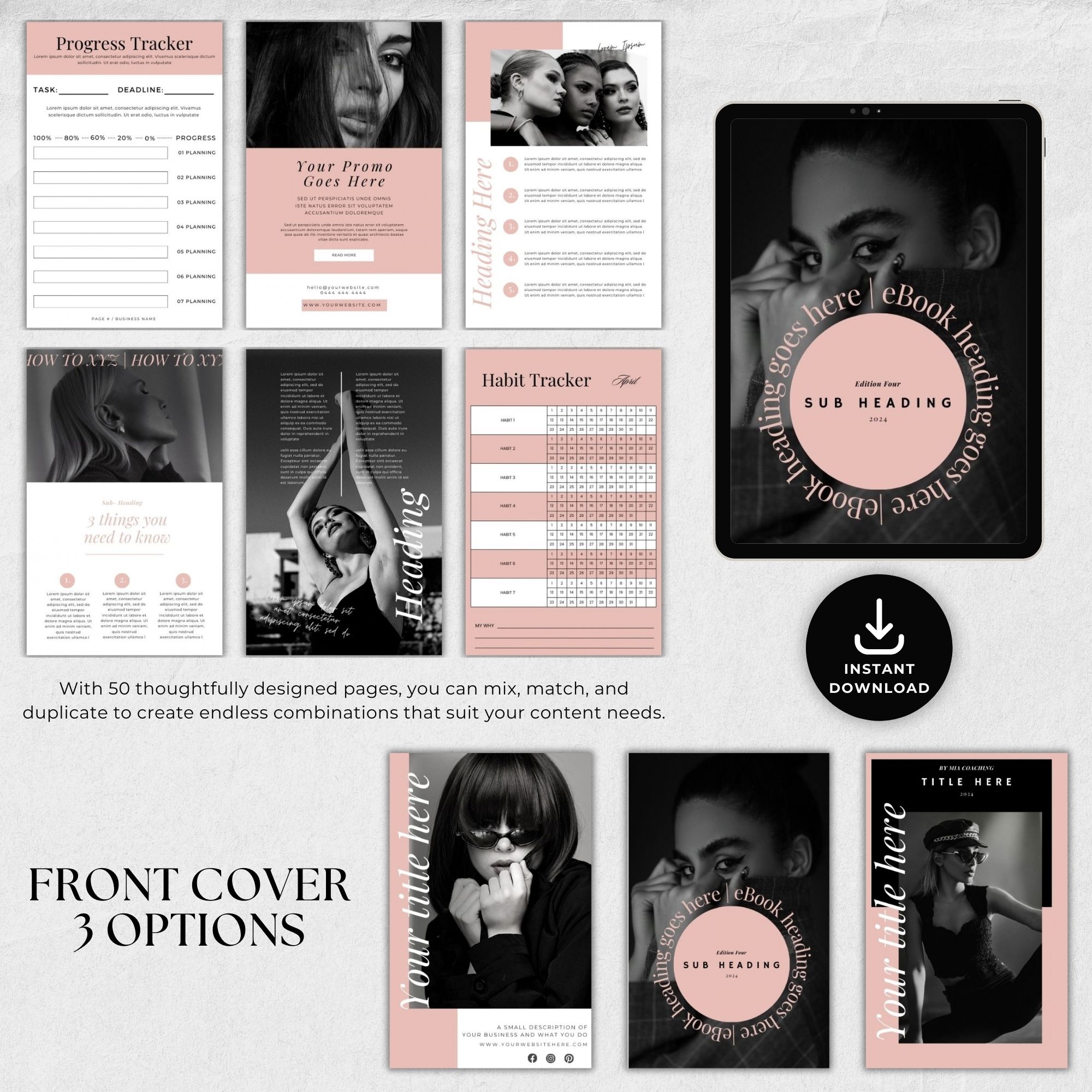 ✔️ Flexible Layouts: 50 thoughtfully designed pages that can be mixed, matched, and duplicated to suit your content.