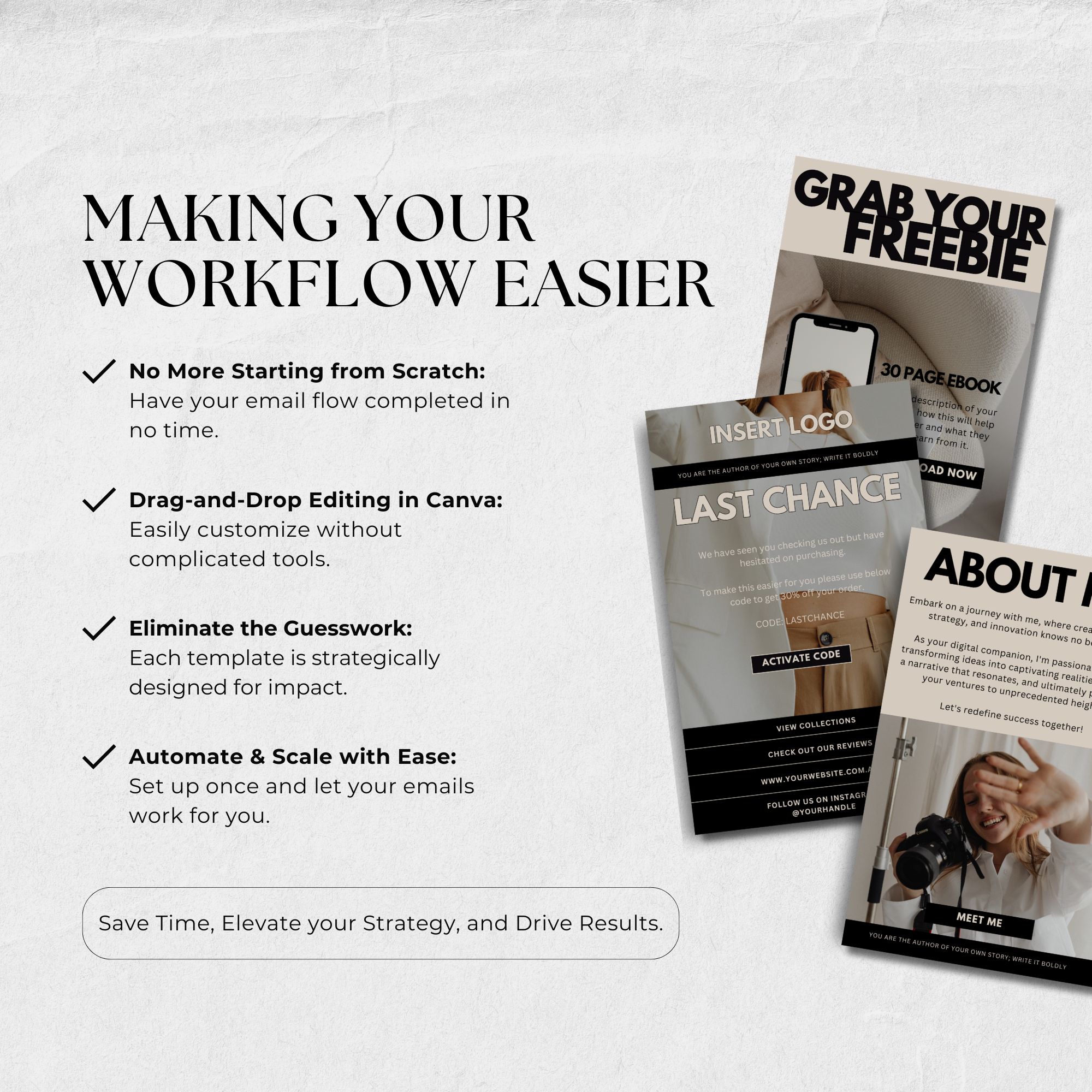With these expertly crafted, plug-and-play templates, you’ll have a complete roadmap to nurture leads, boost engagement, and increase sales without the guesswork.