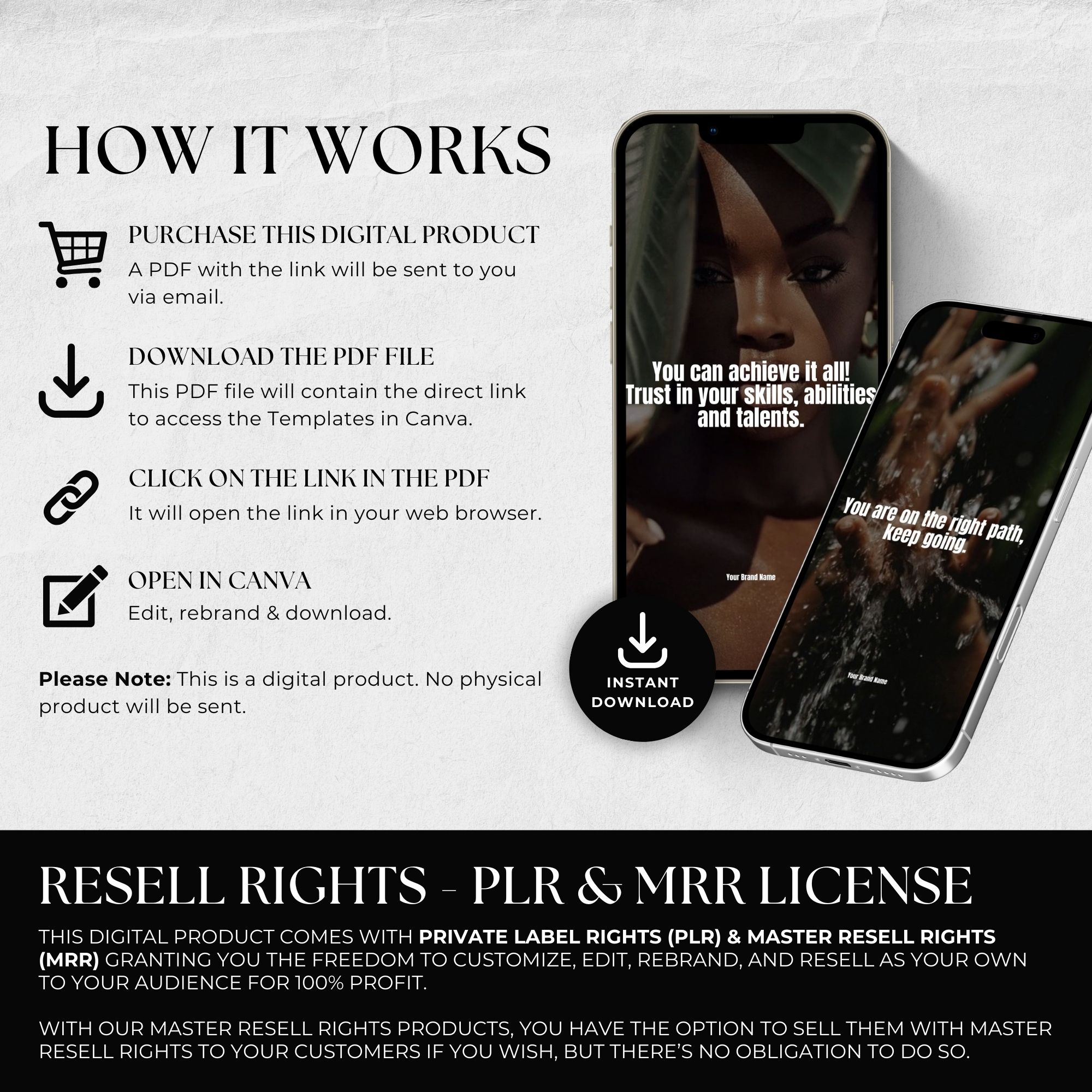 This digital product comes with Private Label Rights (PLR) & Master Resell Rights (MRR) granting you the freedom to customize, edit, rebrand, and resell as your own.