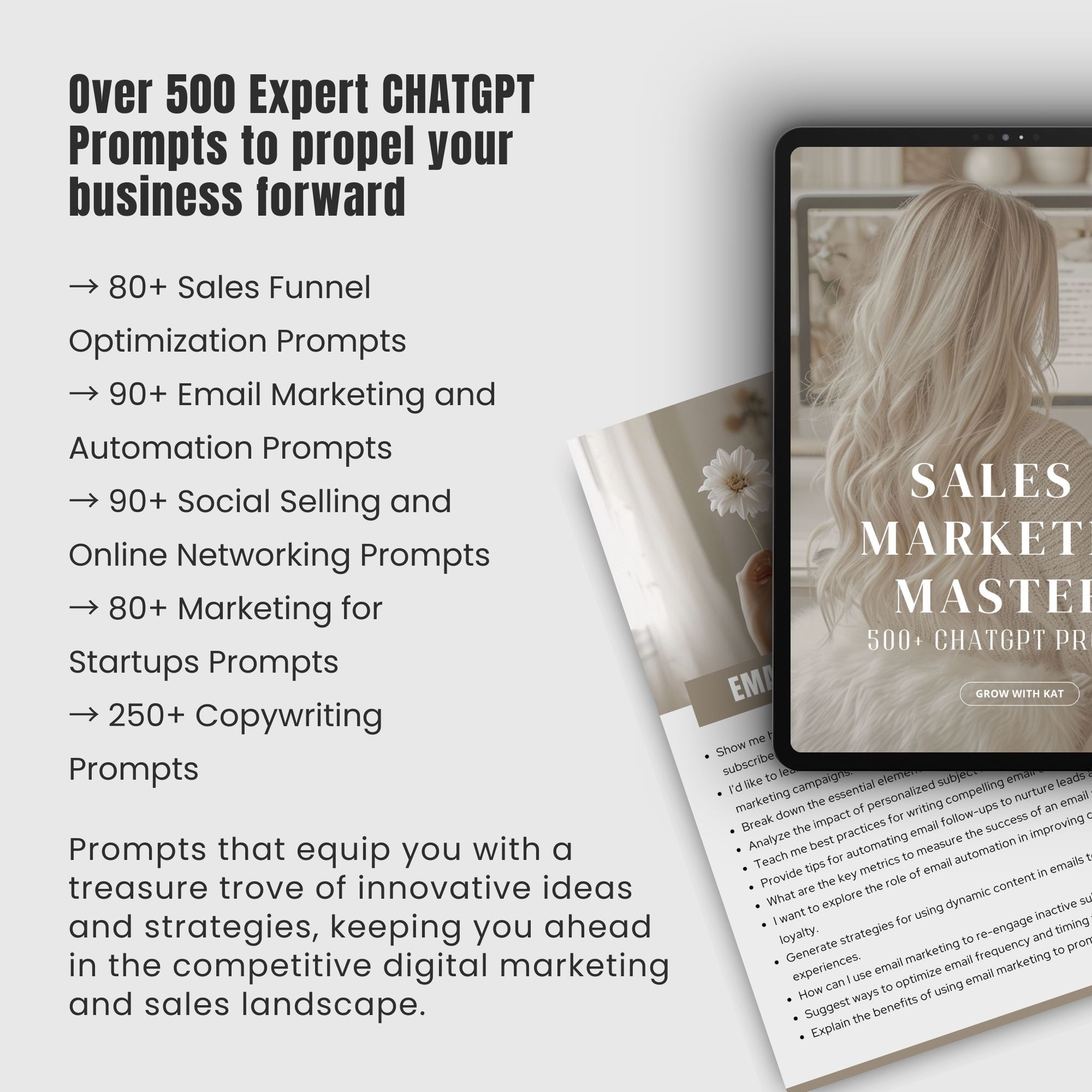 Our meticulously curated collection of over 500+ Sales and Marketing CHATGPT Prompts is designed to empower entrepreneurs, marketers, and business professionals to excel in their business marketing.